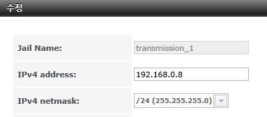 수정을 눌러서 transmission에 할당된 IP를 확인
