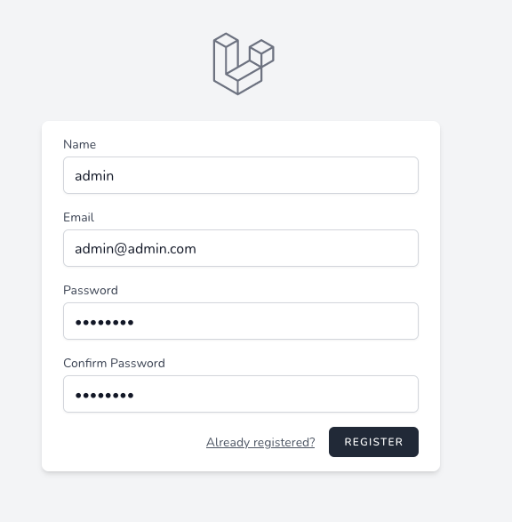 - 사이트 접속 후, 우측 Register를 클릭하면, TALL 스택이 적용된 화면을 볼 수 있다.